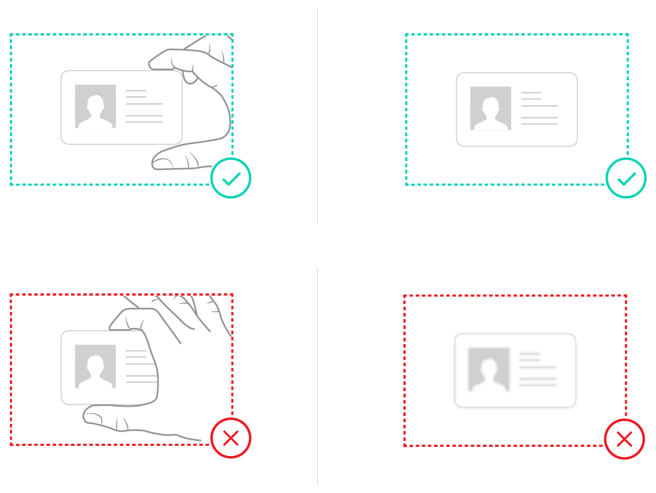 - Alle Informationen auf Ihrem Ausweisdokument müssen gut sichtbar sein.
