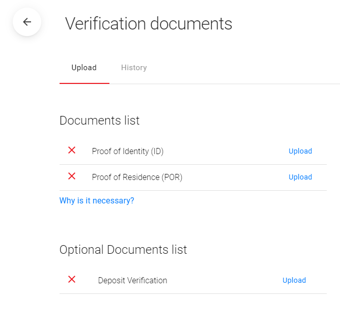 The documents can be uploaded on your Dashboard once you log into your account, under the section “Profile and Settings” > “Profile” > “Verification Documents” as shown in the below screenshots: